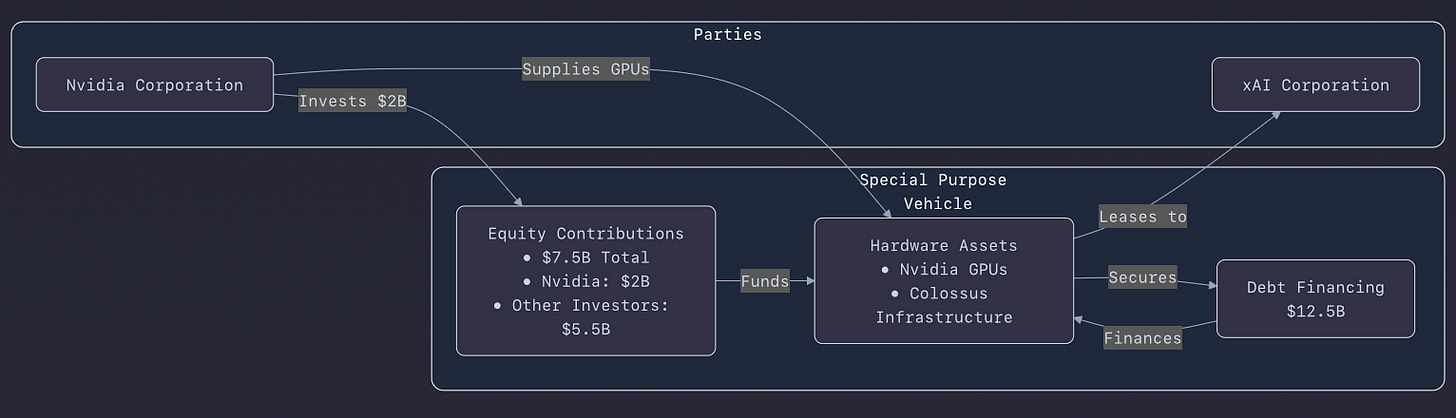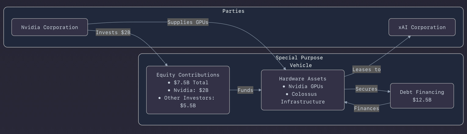 Vertical coordination and financing: By using a special purpose vehicle (SPV) backed by Antonio Gracias and Valor Equity Partners, xAI is effectively separating asset ownership (semiconductors) from operational use (Colossus 2). This structure minimizes balance sheet strain while ensuring access to scarce Nvidia GPUs—an ingenious financial engineering move under today’s hardware constraints.